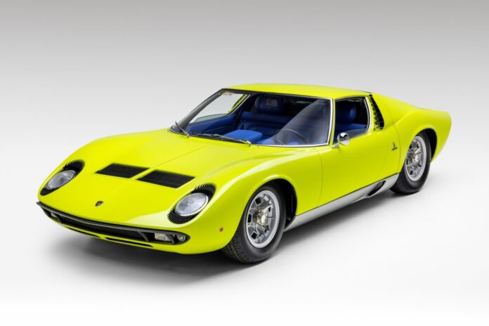 The Miura was developed by Lamborghini engineers Gian Paolo Dallara, Paolo Stanzini, and Bob Wallace and was first introduced as a bare chassis at the 1965 Turin Motor Show. Bertone’s Marcello Gandini was then tasked with styling the bodywork, and the resulting P400 GT prototype was driven by Nuccio Bertone to its debut at the 1966 Geneva Motor Show. Named after a line of Spanish fighting bulls, the Miura featured a steel box-section frame that was perforated for lightness and wrapped in aluminum front and rear body sections.