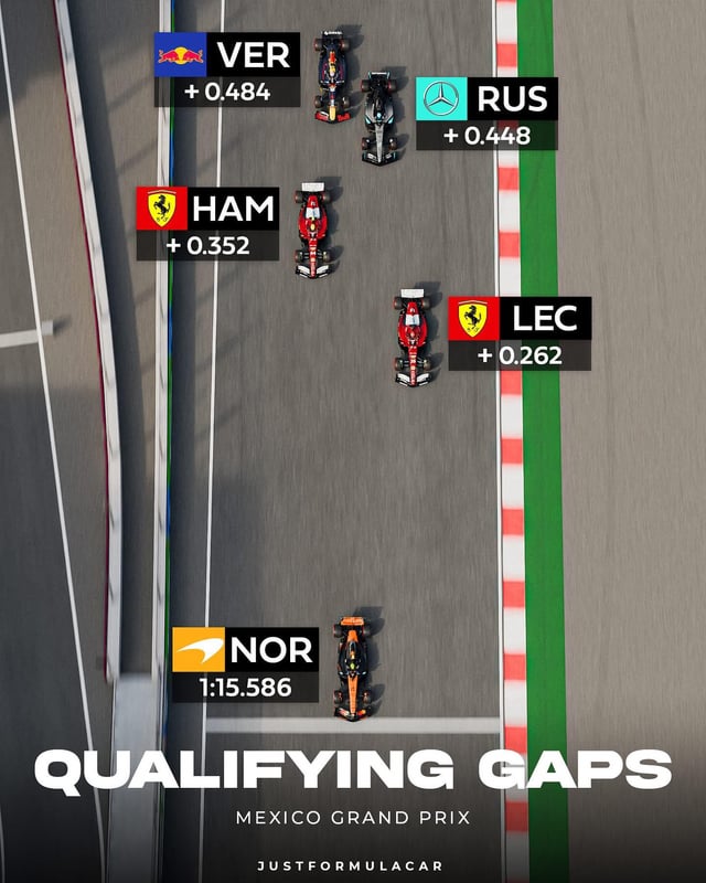 What an amazing qualy! 1:15.586 That’s really spiced up the World Drivers Championship battle! Turn One should be exciting! Lando 1st. Verstappen 5th. Piastri 8th. Just over 1/2 second between 1st and 5th. I love these visualizations because they show just how close the cars are, especially at the end of a rules era. And Ferrari’s right up there, .9 apart. Congratulations Lewis on P3! Well done. submitted by /u/Its4MeitSnot4U |