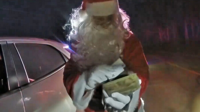 While Santa’s speed was muted in the video, he was apparently going well over the 55 mph (89 km/h) limit. He didn’t deny it and hopped out of the crossover to hand over his license.