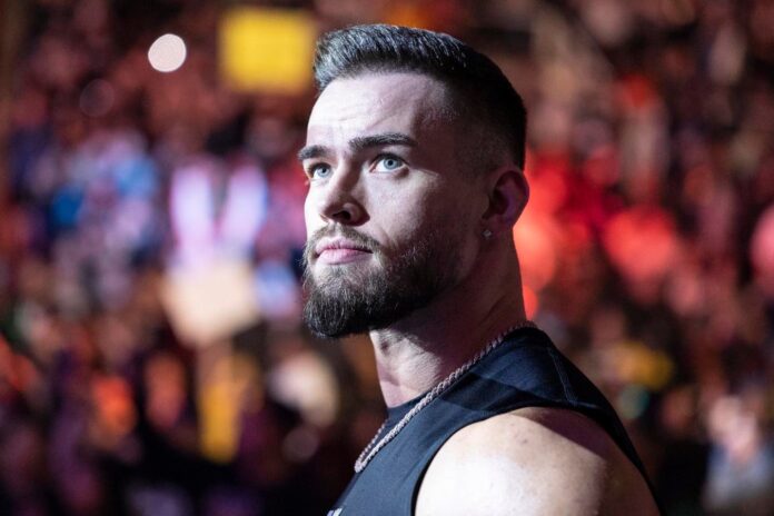 SAN JOSE, CALIFORNIA – FEBRUARY 26: WWE Superstar Austin Theory makes his entrance during Monday Night Raw at the SAP Center on February 26, 2024 in San Jose, California. (Photo by Michael Owens/WWE Via Getty Images)