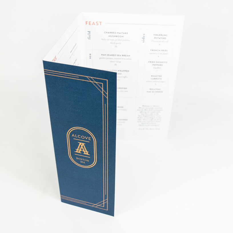 Alcove’s menu, photographed by designer Drew Katz.